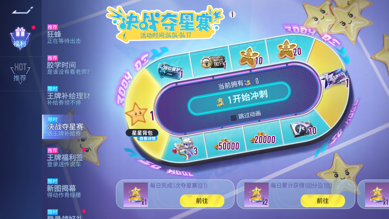 夺星赛全新关卡『星渊矩阵』上线啦!4月4日~4月17日,参与夺星赛玩法可免费获得星星背包和王牌补给券!