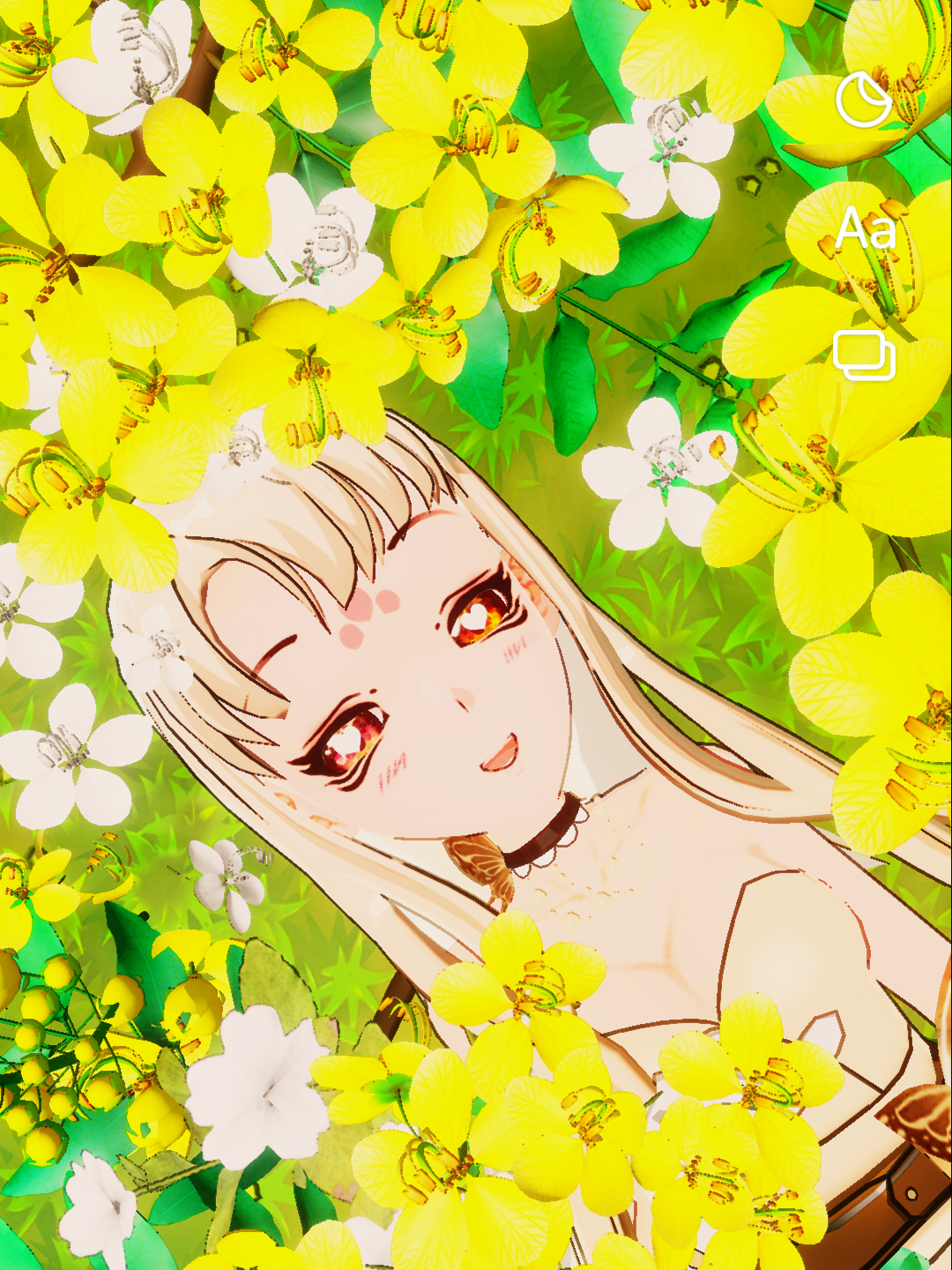 花朵飘散。我躺在花朵上。