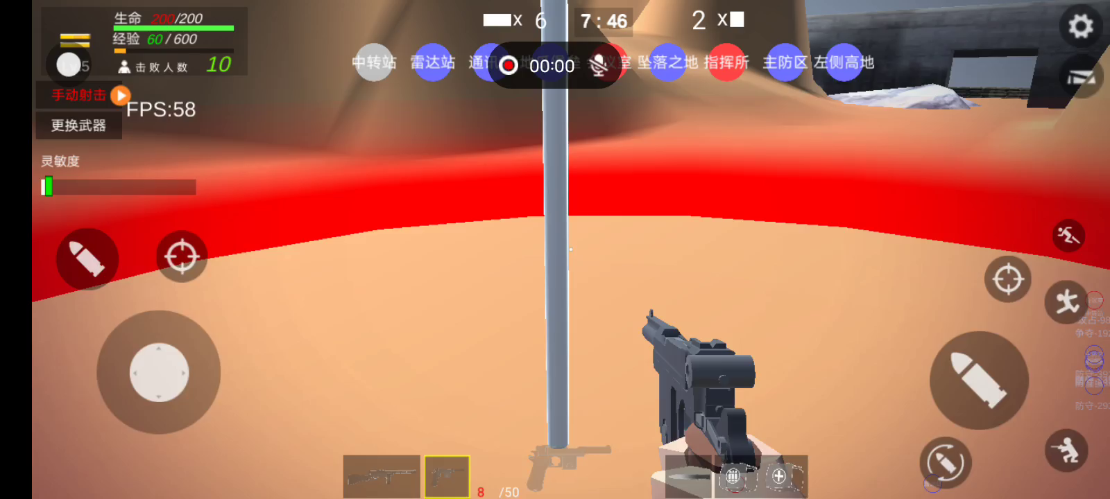 这是一款抗战模拟器,玩法简单,操作容易上手。就像战地一样,游戏主要是以占领据点,击败对手来获取胜利。玩家作为蓝方部队模拟进攻红方部队,可以选择操控多种类型兵种;比如突击兵,侦察兵,爆破手,狙击手,机枪手,医疗兵等等。 游戏内主武器32把主武器,24把副武器,还有可以携带的各种特色武器。 喷火器,RPG,医疗包,弹药包,马刀,扳手,狼牙棒等等特色武器供你选择。快来体验这不一样的抗战模拟器吧!