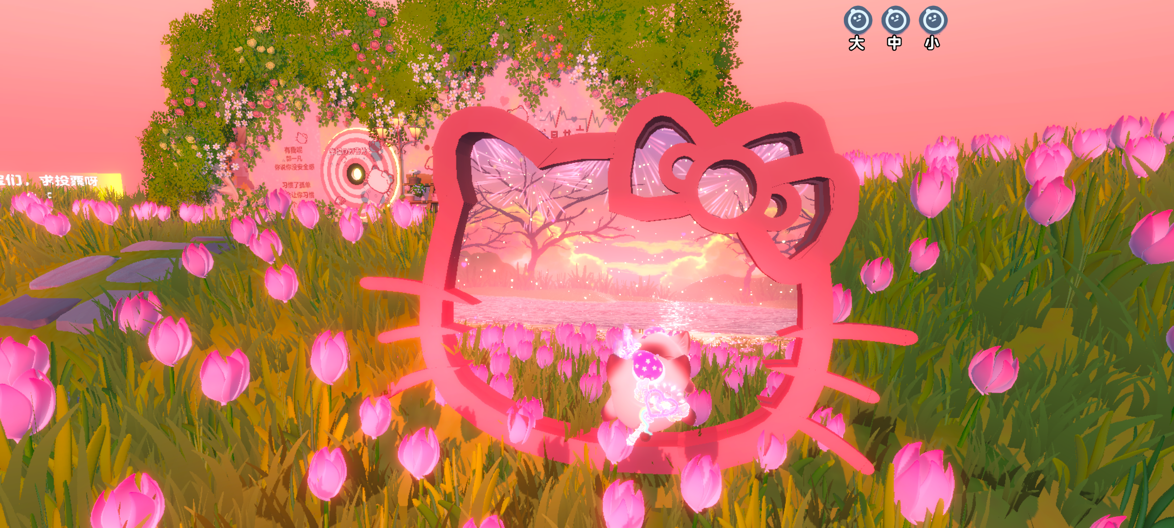 就在一起听歌是共享心跳的后边,靠近它就会自动弹出来啦,一个可爱的Kitty猫,里边装了镜子可以反射到后面的景色,是不是非常浪漫呢~远离后Kitty猫就会自动弹走啦,所以也算是一个隐藏打卡点吧💐