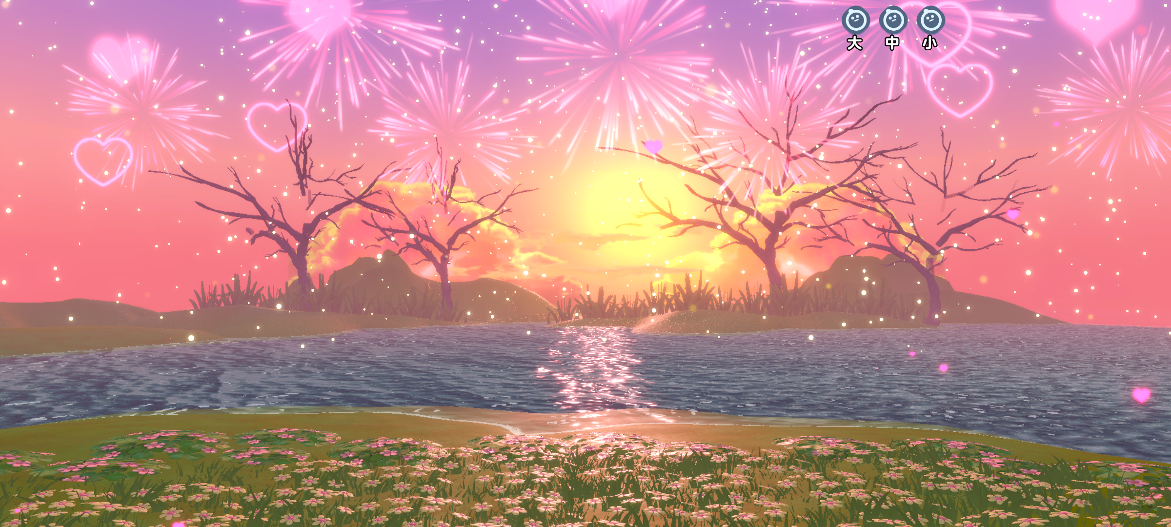 进入光点就来到我们最后一个打卡点啦,这里看起来是不是超级美呀,爱心形状的烟花和,波光粼粼的湖面,草坪上都是各式各样好看的花花呢💐