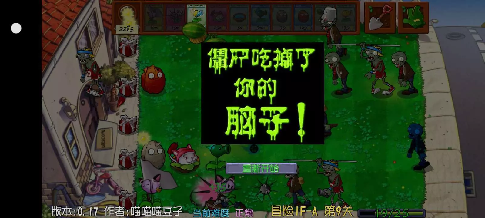 请注意看看里面的内容,这我一个车都没丢,就有一个僵尸进房子,这喵喵喵豆子改一下