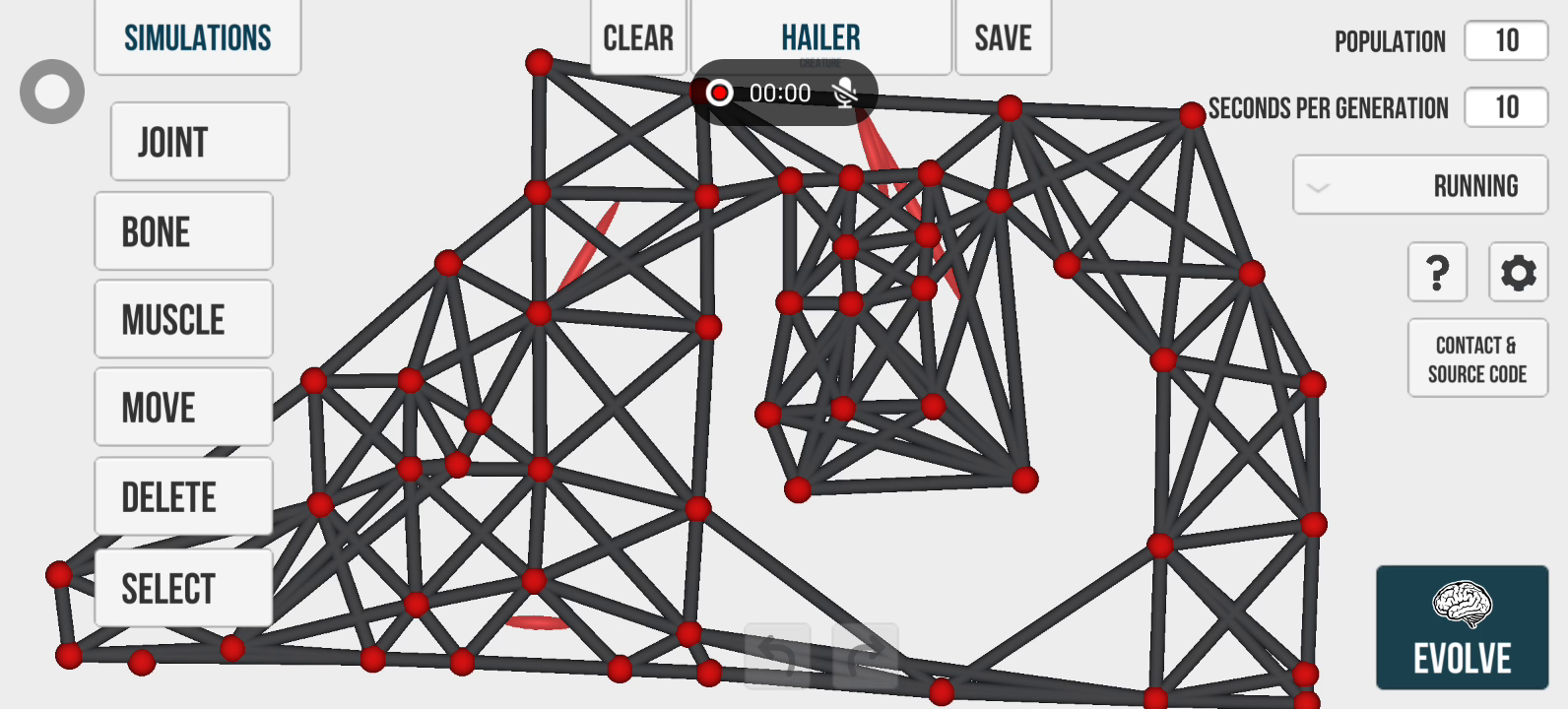 【游戏介绍】 ·使用关节、骨骼和肌肉来建造仅受想象力限制的生物。 ·神经网络和遗传算法的结合使生物能够“学习”并自行改进任务。 ·任务包括跑步、跳跃和攀爬,目标是建造擅长所有任务的终极生物。 ·没有明确的目标,即使生物达到100%健康,也不会获得任何奖励,但会带来兴奋和喜悦。