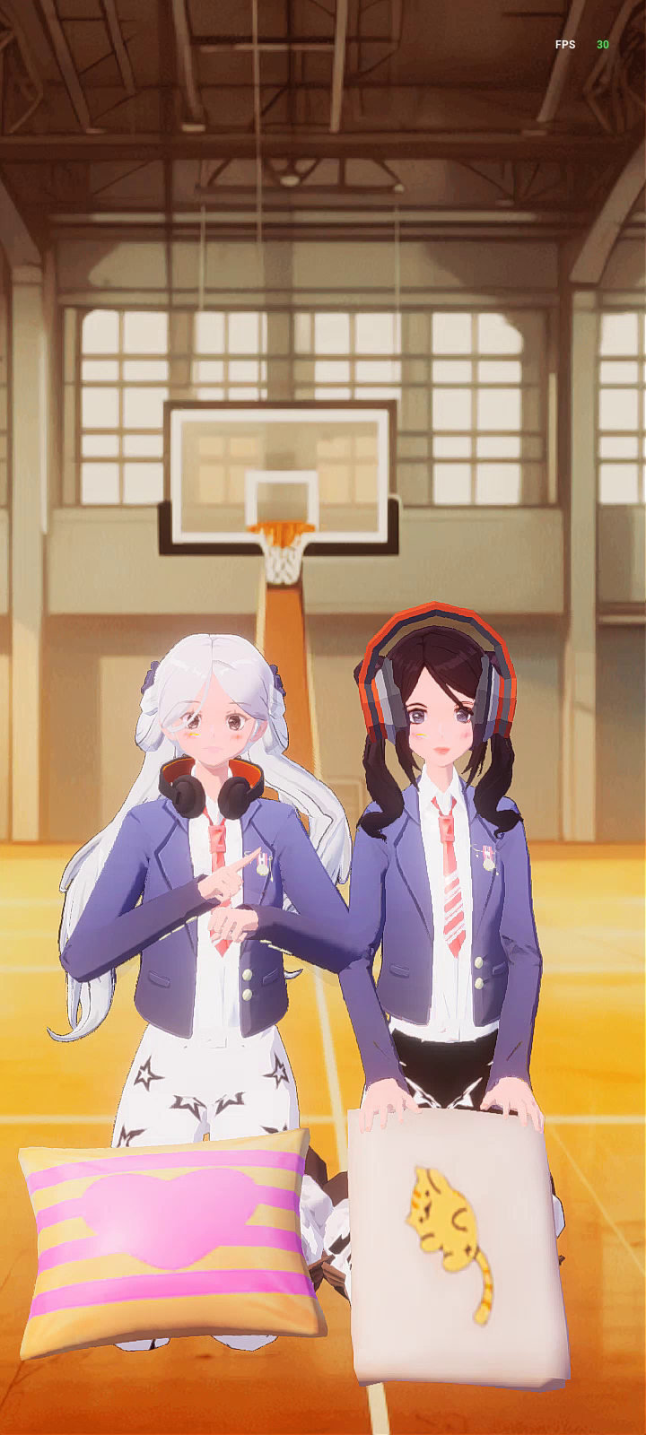 和朋友一起拍枕头大战。