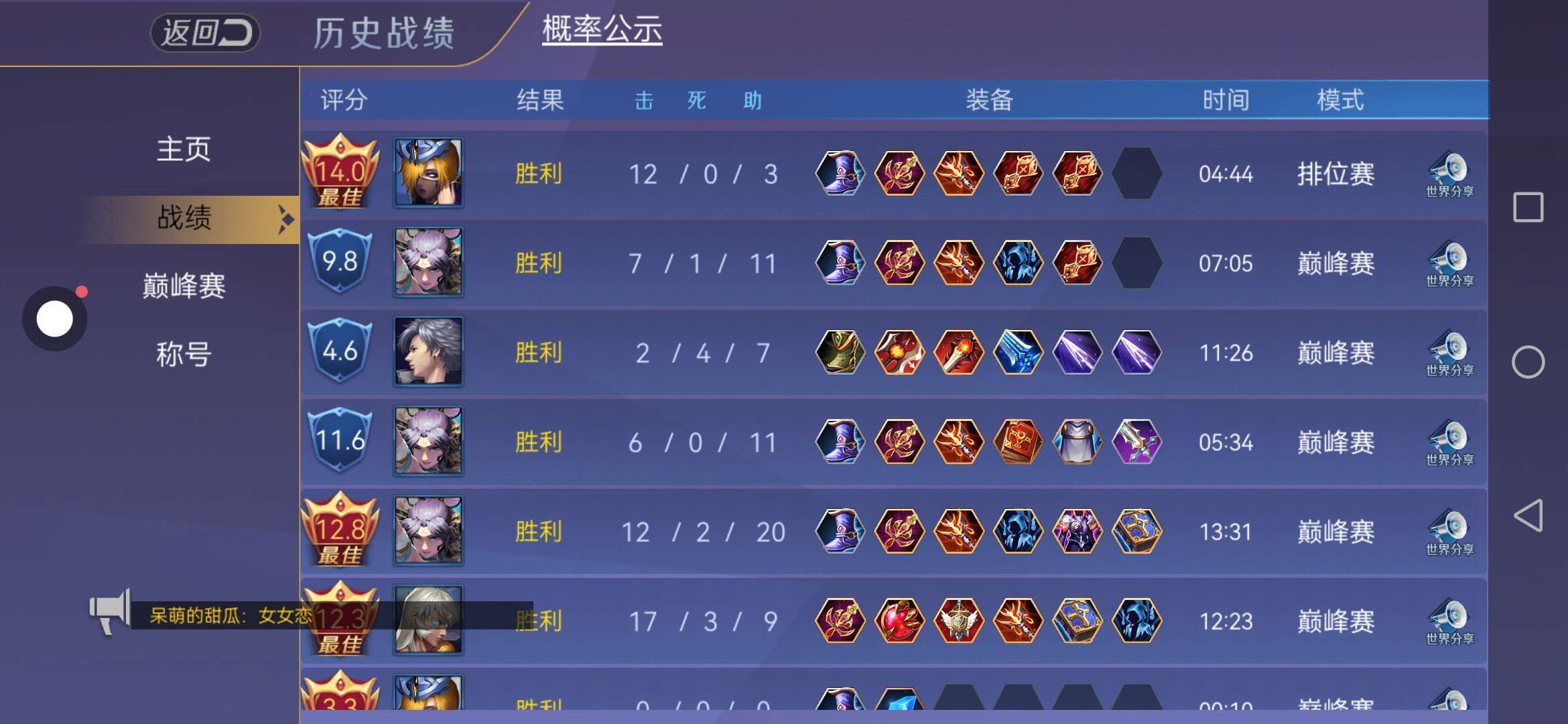 今晚巅峰战绩😋