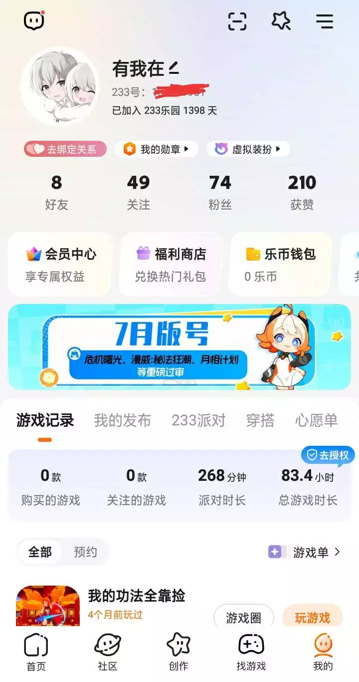 不知不觉,我大号已经加入233乐园1398天了