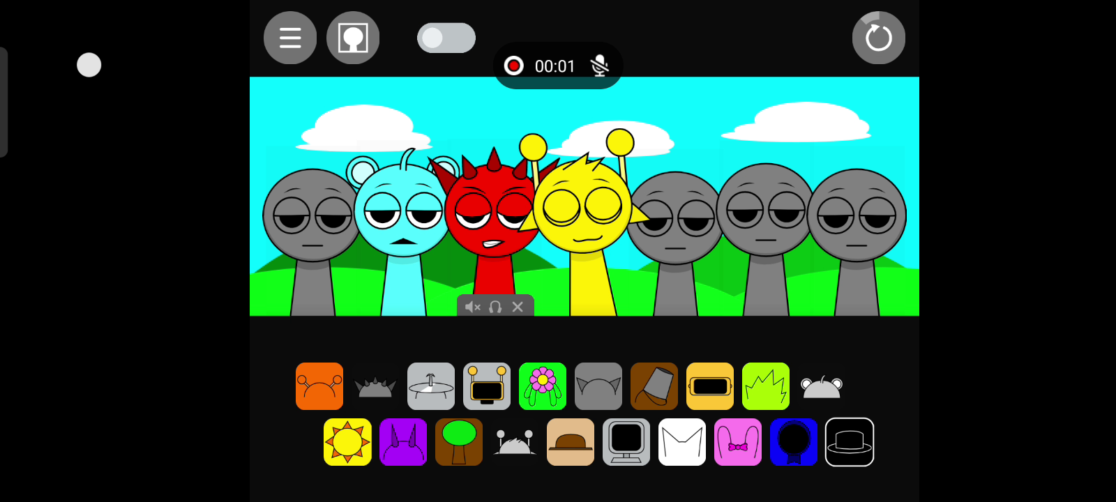注意:1.节奏盒子(Sprunki-罪人版)为国外玩家自制,内含恐怖元素。 2.如何触发角色互动:在第一阶段,将【棕色帽子】角色放在【黄色天线】角色左边即可触发恋爱互动(如视频所示)。 3.如何进入第二阶段:放置【黑色帽子】角色。 ------ 节奏盒子是一款独具特色的音乐类游戏,让你能够自由挑战音乐关卡,还可以自行创造关卡供其他玩家进行尝试挑战。将代表不同声音的各种符号拖动到小人身上,便会混合出节奏感超强的各种音乐,涂鸦风格的画面和各种节奏感超强的音乐一定会让你喜欢。