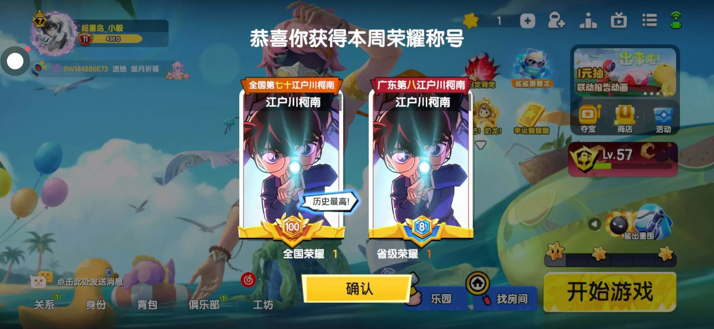 拿下继女帝之后第二个国服:国服江户川柯南
