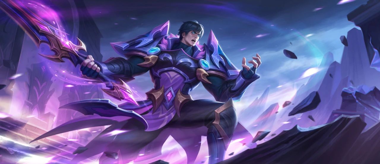 凋零骑士向指定方向丢出巨刃,如果命中敌方和地形障碍,都会将自身拉至目标处,并对敌方造成物理伤害和晕眩1秒。命中地形障碍以及英雄单位都会减少该技能冷却时间4秒。命中敌方单位施加“亡灵附身效果”持续3秒