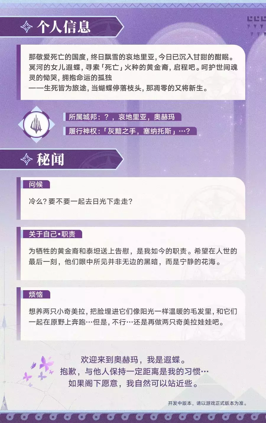 开拓者好呀~今天为大家带来「遐蝶(记忆•量子)」的角色前瞻!