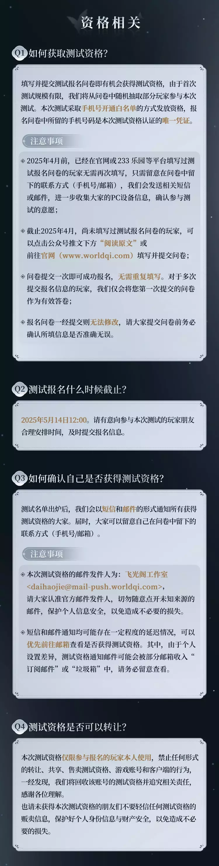 相信大家都非常关心此次“苦昼短”测试资格的相关信息!如何报名参加测试?什么时候发放测试资格?设备要求是什么?仙长们的疑虑,在这一站式统统解决!