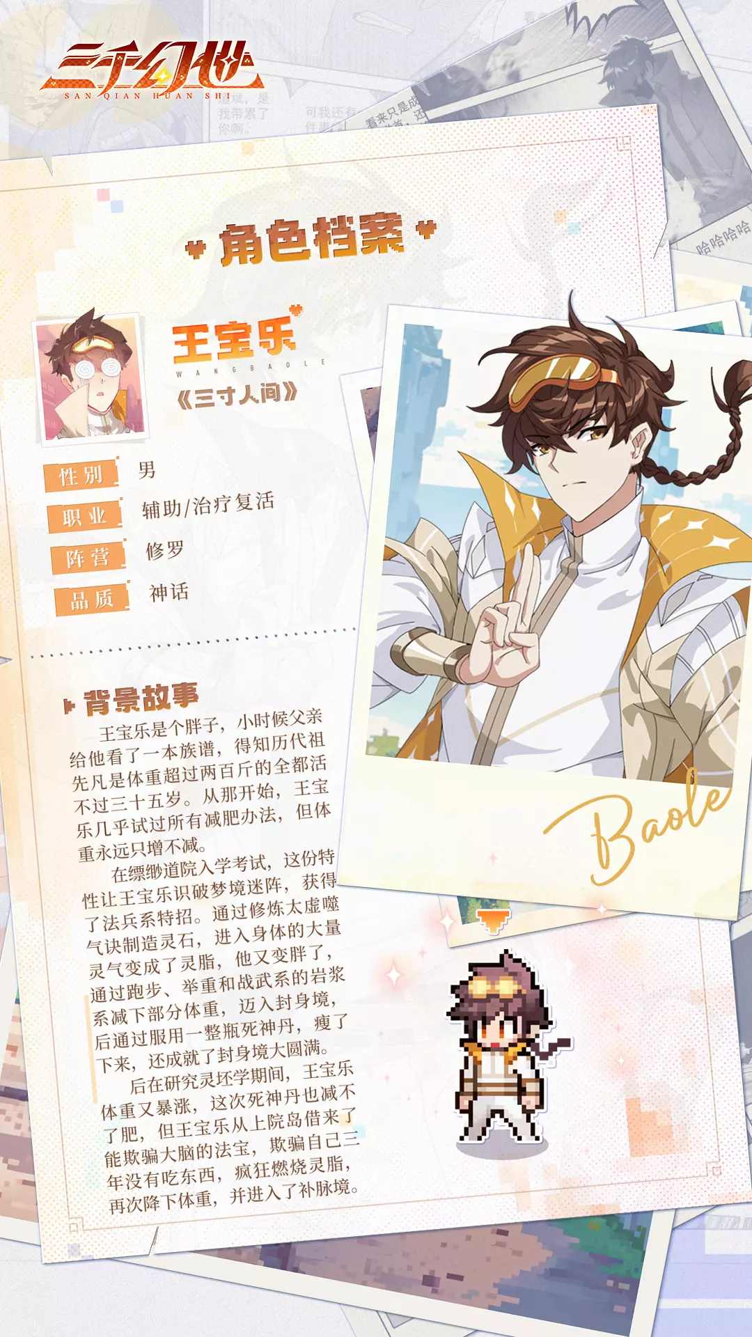 王宝乐原本虽是个小胖子,但能够凭借自身的毅力以及恒心不断减肥修炼,修得十寸灵根,让人甚是佩服,各位复序者不妨猜猜宝乐的技能效果是怎样的?