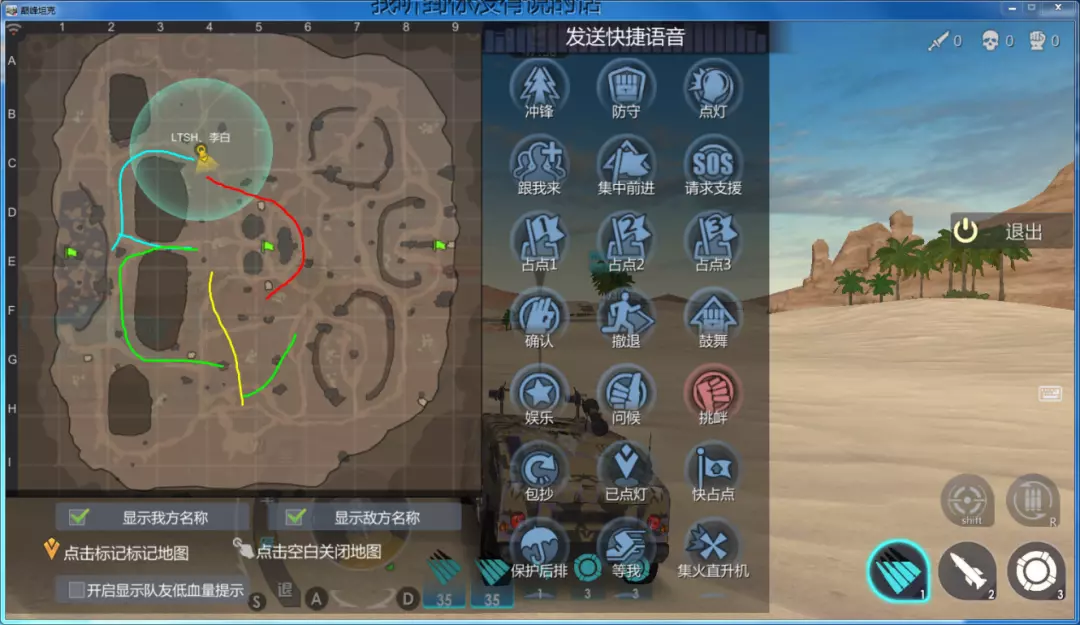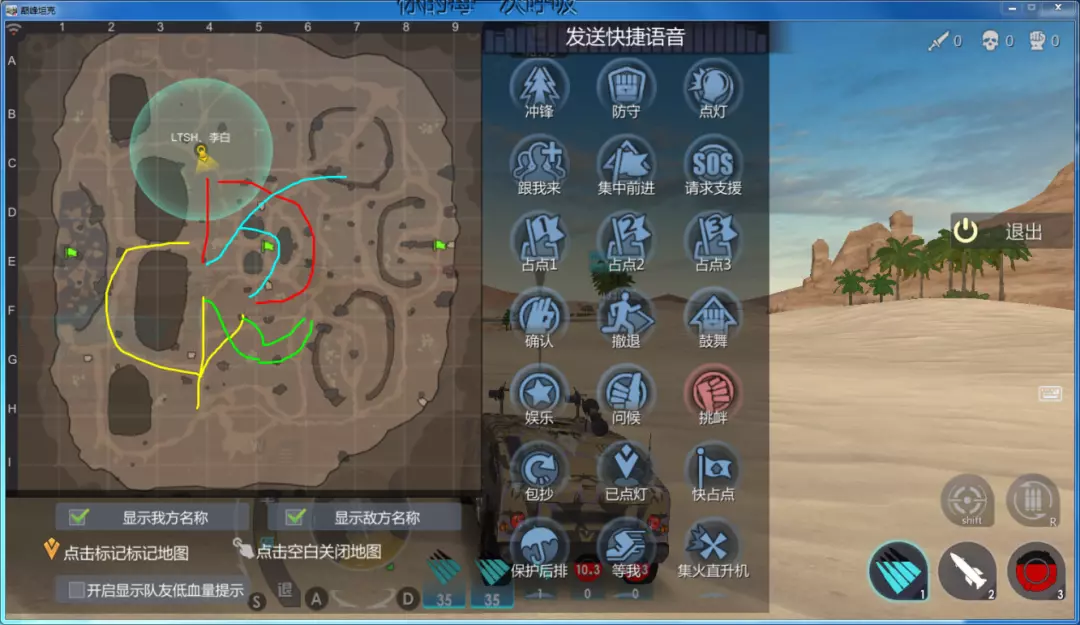 (红蓝为一队,红为进攻,蓝为撤退。黄绿一队,黄为进攻,绿为撤退)