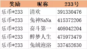 我们将在正确参与活动的玩家中,随机抽取5名,送出【乐币*233】;
