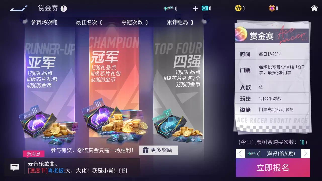 赏金赛将于4月11日~4月17日限时开启,车手们可以在每日12:00~24:00进行匹配参赛。 不要错过这场1v1公平竞技,来争夺赏金之星吧!
