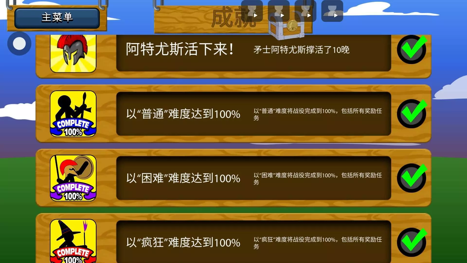 完成了四个成就