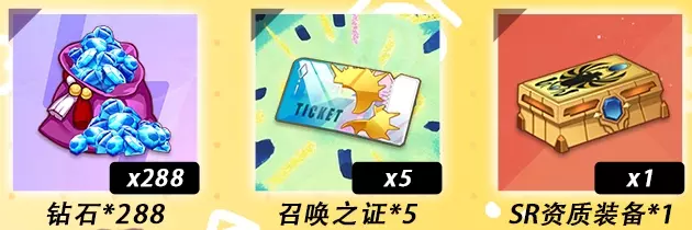 预约即得:钻石*288、召唤之证*5、SR资质装备*1