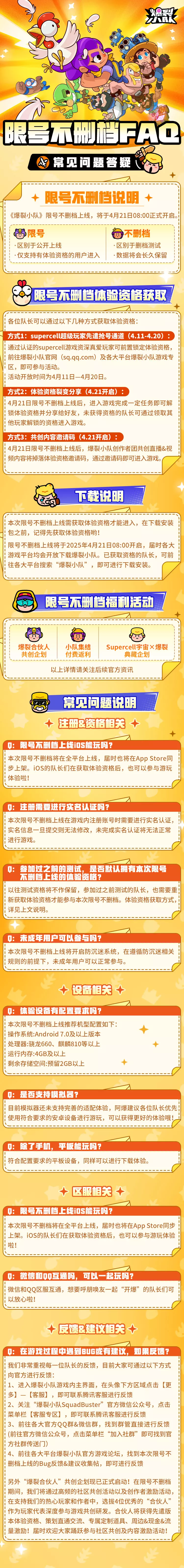 《爆裂小队》限号不删档上线将于4月21日正式开启!阿爆知道大家肯定有很多想了解的信息,特意为大家准备了详细FAQ~具体内容请查看长图!