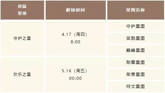 召唤师可进入星图界面中进行点亮操作。但欢乐之星所关联的娱乐模式星图——“勋章星图”、“荣誉星图”和“符文星图”将于5月16日解锁,届时方能点亮这3张星图。