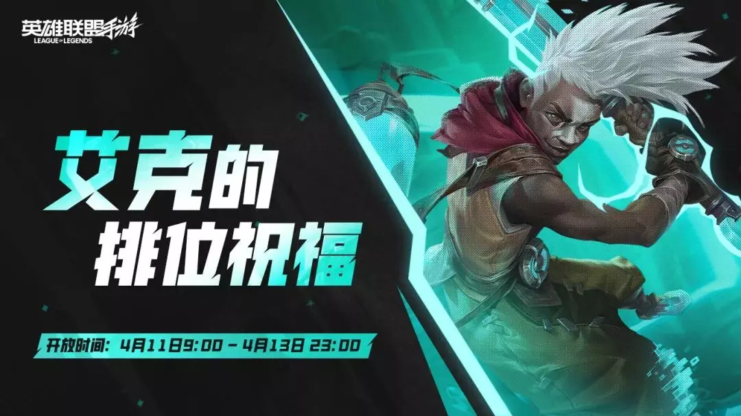 艾克的排位祝福即将开启!4月11日(明日)9:00-4月13日23:00活动期间,系统会记录召唤师参与活动前的排位赛段位、海克斯能量值和海克斯护盾数。在召唤师最多进行7局排位赛后,若召唤师段位不低于活动前,则保留当前排位赛段位、海克斯能量值和海克斯护盾数。
