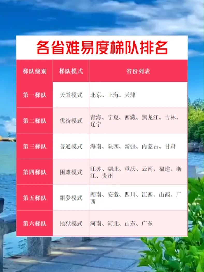 各省高考难易度梯队排名 #高考 #志愿填报