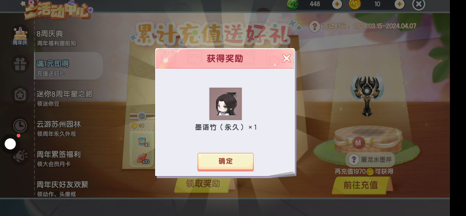 就一块钱没骗你们,迷你周年庆,太棒了,1块钱得到了那么棒的皮肤,还送了300个迷你豆,太香了,我超爱