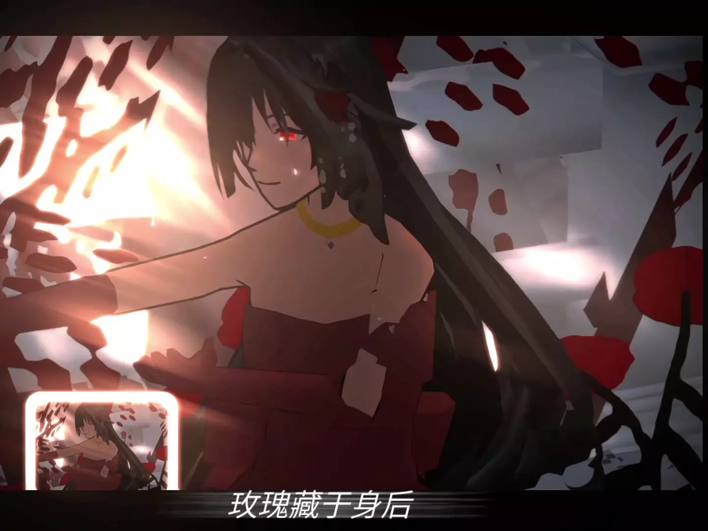 “玫瑰藏原于她人身后”