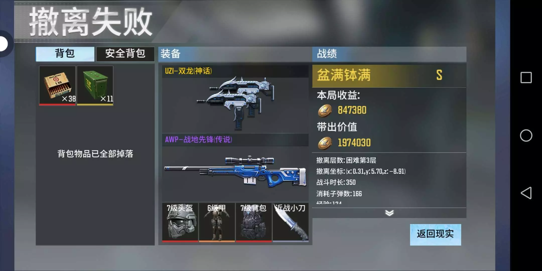 刚打的,就带了一把枪进去,虽然说最后撤离失败了吧,但是一个七级头和一个七级包还是很香的.