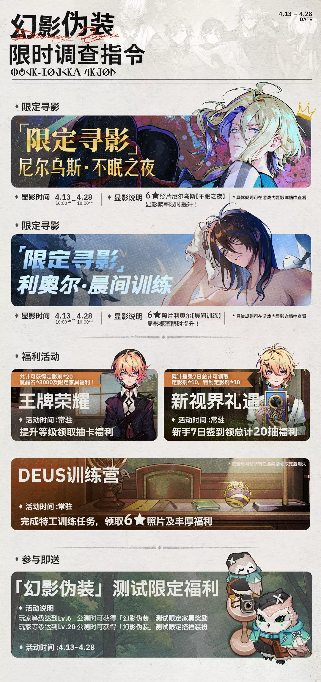 「幻影伪装」行动将于今日正式启动,我们为新手特工整理了本次测试期间的精彩活动情报。希望能对您有所帮助。
