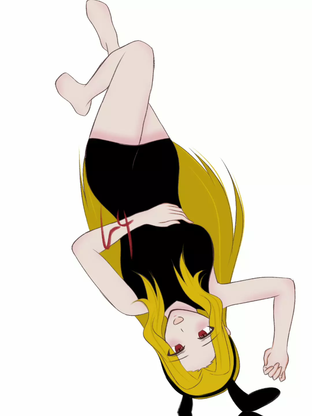 这是一篇分享原创暗黑风格二次元绘画的社区帖,作者展示了带有血迹元素的二次元人物画作,还放出了绘画的分层创作界面,询问大家是否喜欢这幅原创绘画作品。