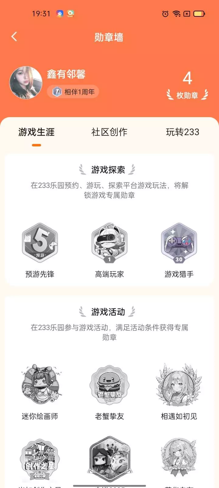 四枚勋章啦。