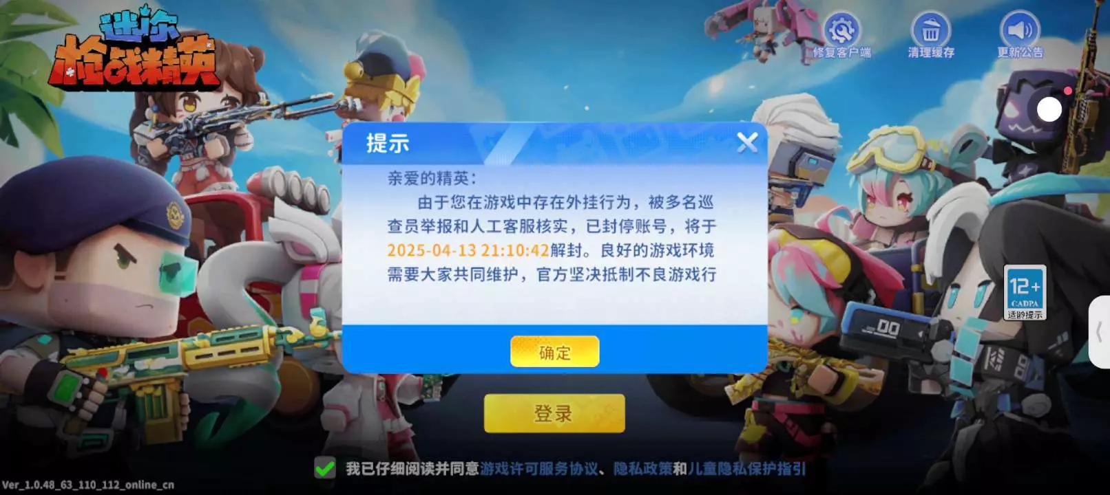 开挂,被2个队友举报强制下线