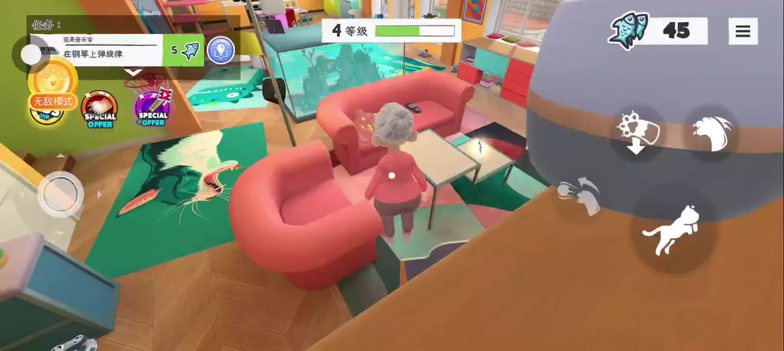 在这个身临其境的猫模拟器中成为终极猫科动物麻烦制造者,您的任务是在为人类建造的世界中制造混乱!从打翻无价的花瓶到抓起家具、偷食物和潜入禁区,《奶奶的贴心小猫》让你体验淘气小猫的生活。 凭借其滑稽的滑稽动作和有趣的游戏玩法,《奶奶的贴心小猫》捕捉了猫科动物自由的精髓,让你探索、玩耍和造成严重破坏,同时让你的人类保持警惕。在他们受够之前,你能在奶奶的房子里制造多少混乱?