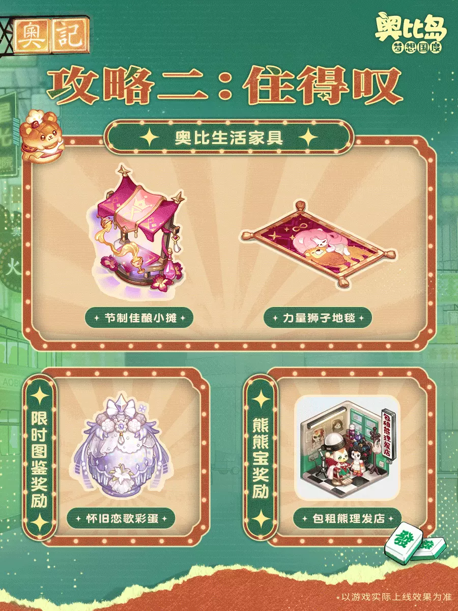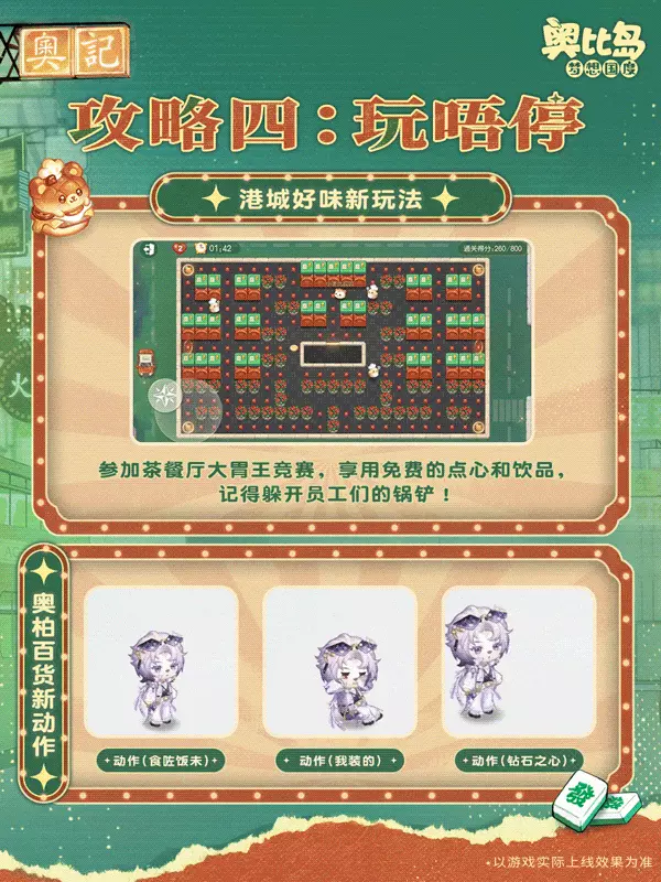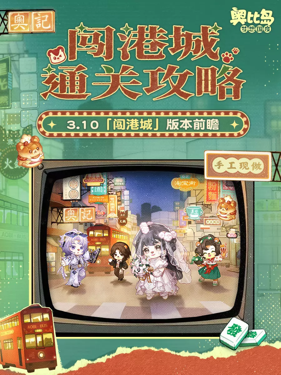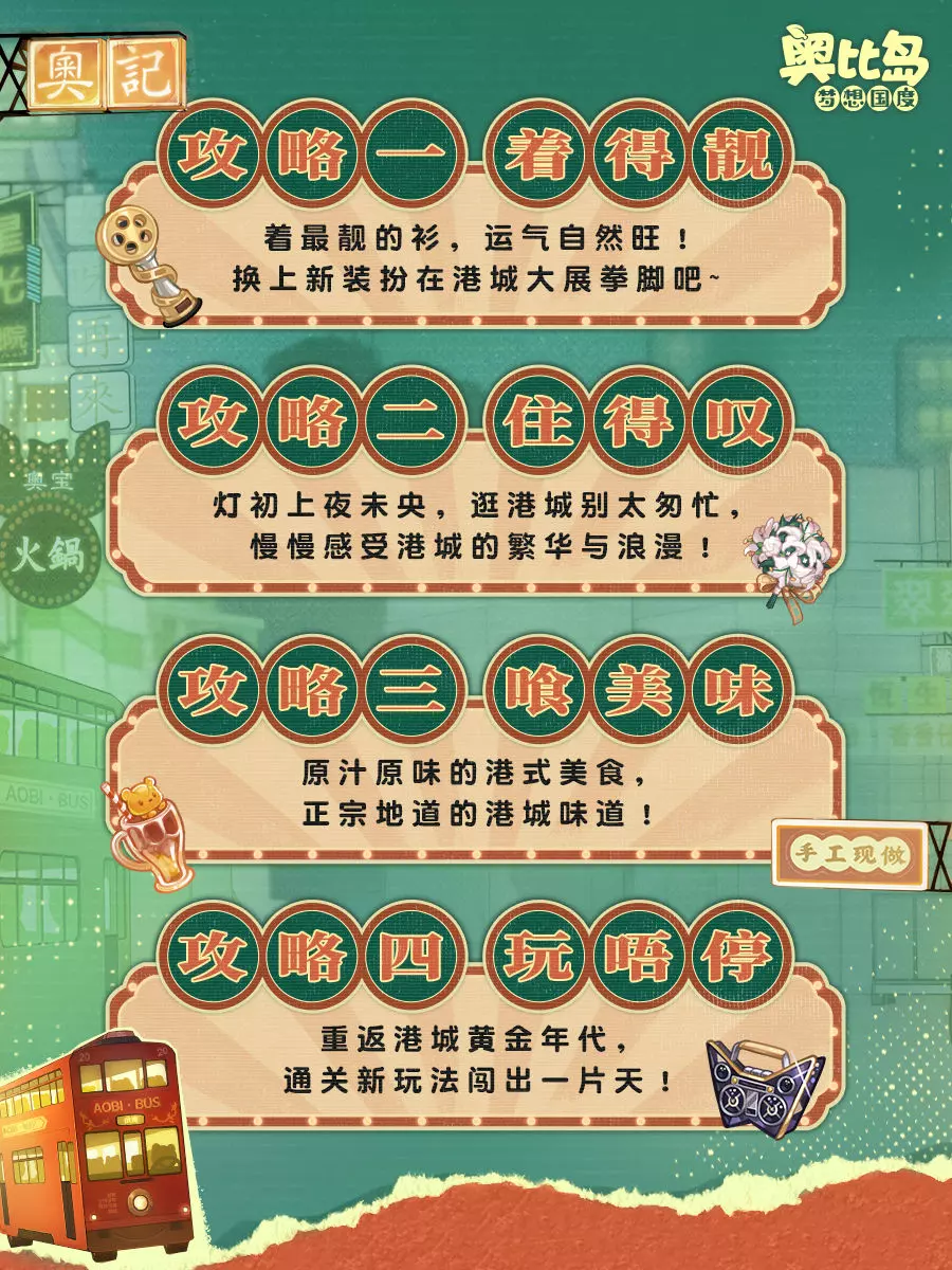 🚌3.10「闯港城」版本将于4月17日重磅登场,港风主题服装&家具大量上新,可爱又“美味”的限时宠物「熊可菠萝」出没,还有全新玩法「港城好味」即将上线...小奥比们快收好这份通关攻略,准备出发闯港城咯!