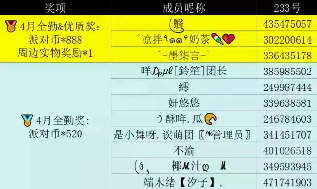 🎁4月第1周(4.1-4.13)符合奖励条件的人员如下: