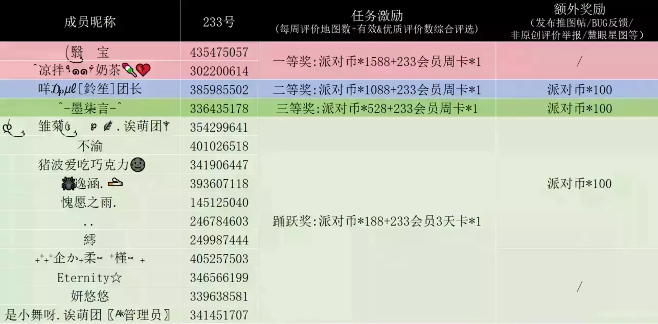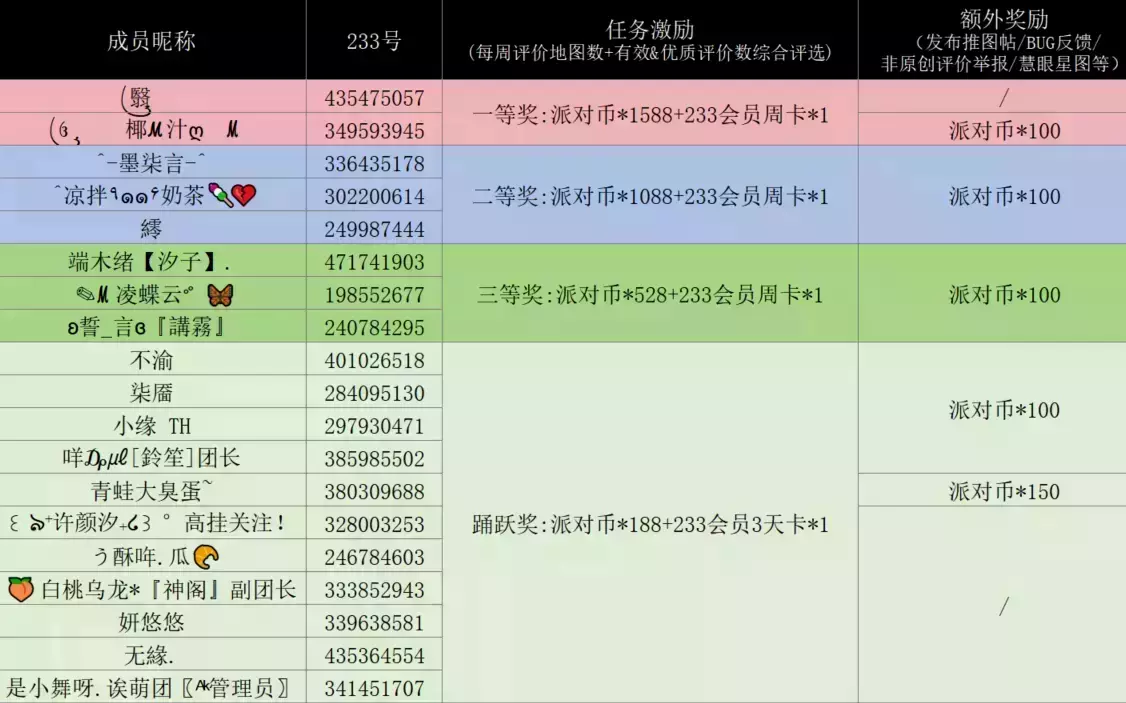 额外给当月每周都有参加评价任务&评价内容优质率前三的成员发放奖励哦,希望大家再接再厉,写出更棒的优质评价!