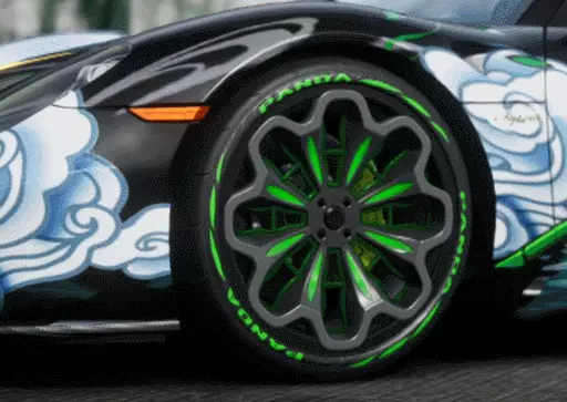 轮胎上的碧绿纹样与之呼应