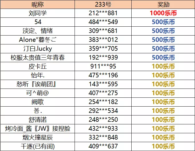 恭喜以下用户获得本次活动奖励,以下是获奖名单~