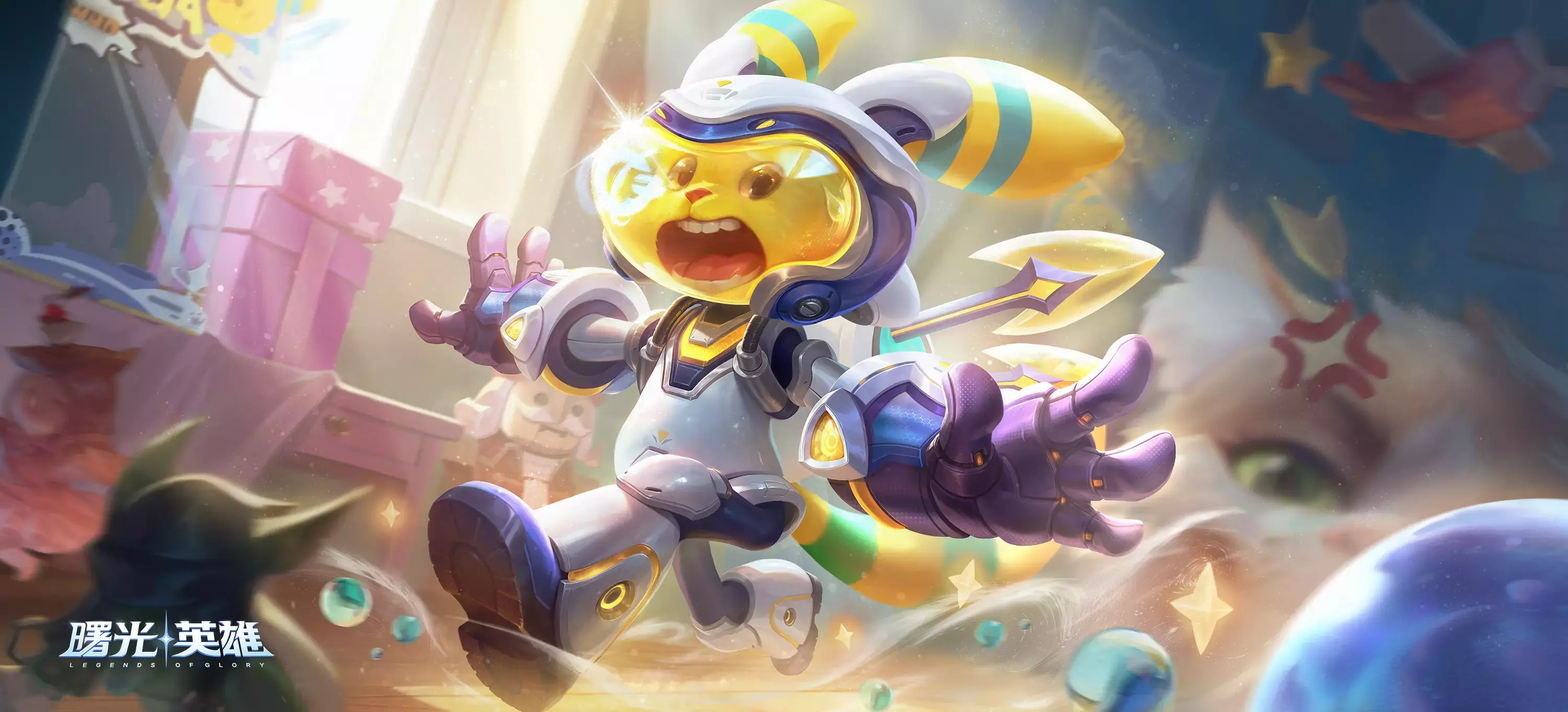 该皮肤,便以“玩具觉醒”作为核心概念,结合宇宙冒险、童真幻想的主题,塑造了一个既可爱又充满英雄气概的小家伙。
