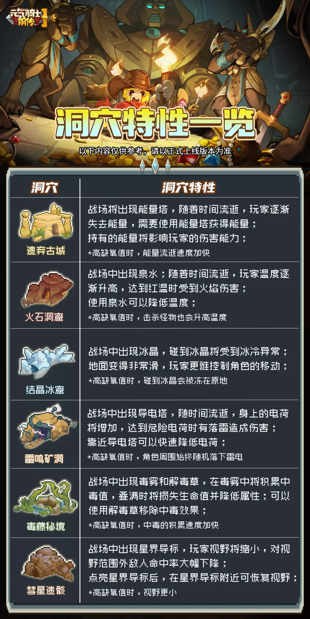 2、洞穴特性一览