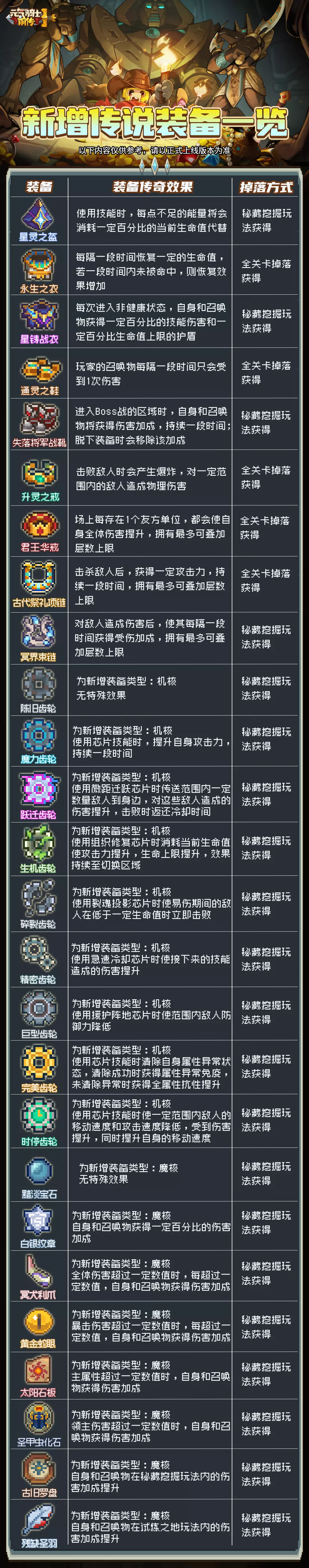 本次更新中,我们将新增一些传奇装备,详情可见下方长图↓