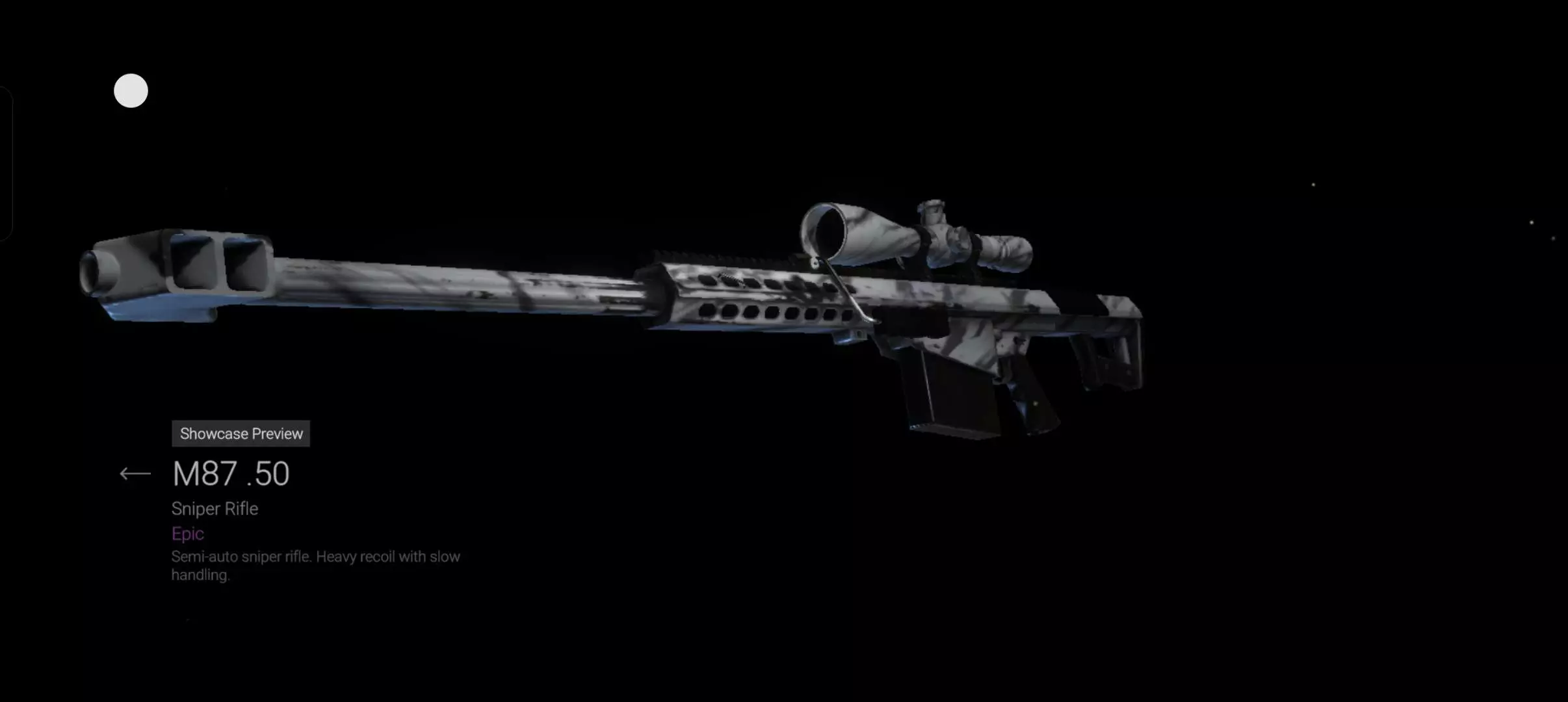M82A1反器材狙击步枪,游戏中为其增加了一个托腮板,还上了一个雪地迷彩。