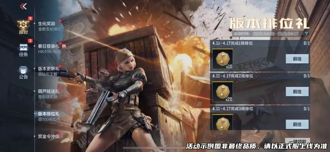 参与排位赛可获取很多排位币哦~累计参与5局排位赛一共可以获得排位币x100,记得来领取这波福利!新赛季冲分就是现在!