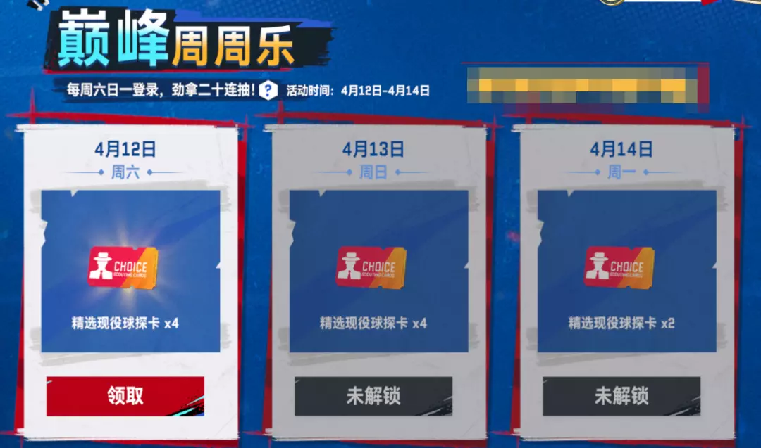 ✅ 巅峰周周乐回归!每周【六日一】登录爽拿10张精选现役球探卡!拿满三周30抽轻松领!
