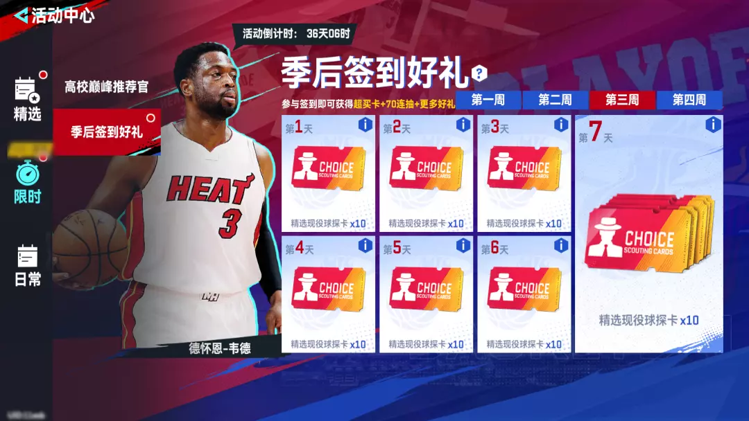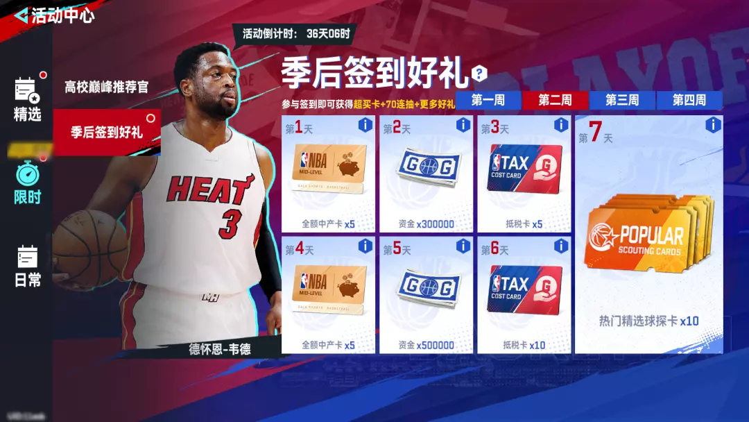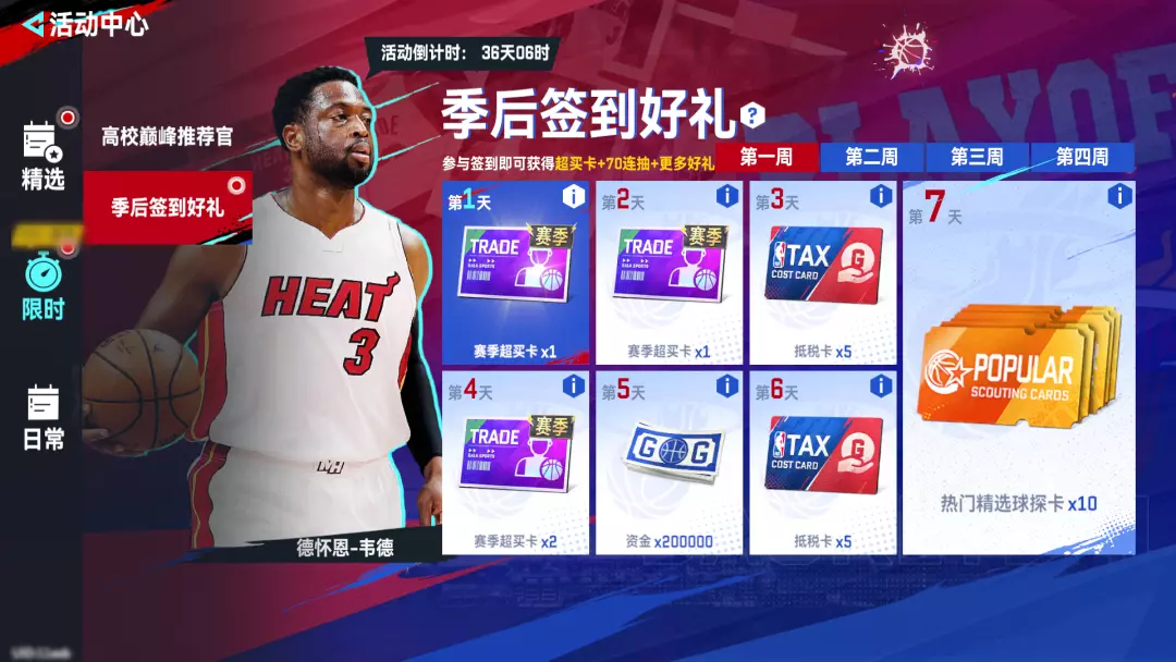 全新季后签到上线,超买卡、大量抵税卡、海量资金等超多好礼统统免费带走!完成28天签到爽拿100抽!(精选现役球探卡*70、热门精选球探卡*30)