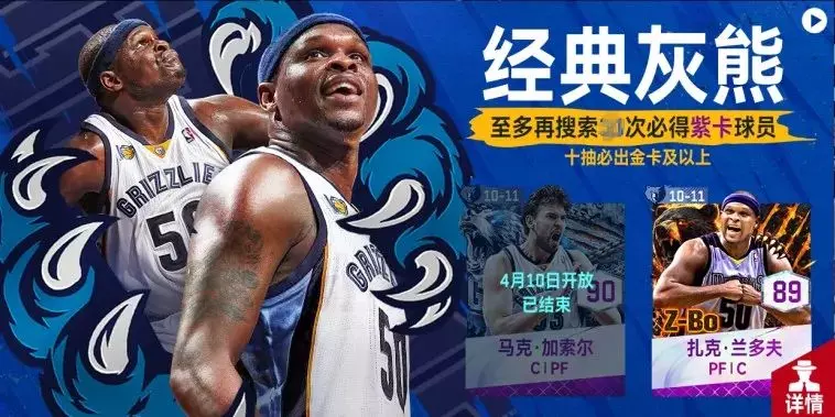 活动期间,可使用经典球探卡和G币在【经典灰熊】卡池中,招募紫卡球员兰多夫和经典灰熊球员。单抽118G币,首次十连搜索必得1张紫卡球员!每次十连必出金卡及以上球员!每搜索20次至少获得1名紫卡球员。