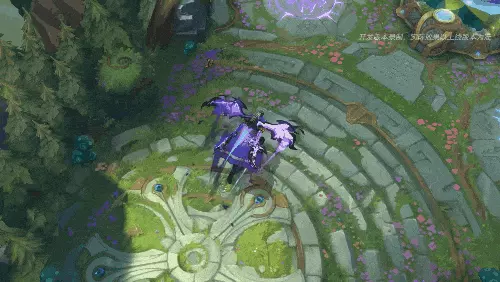 卢锡安展开双翼向前冲刺一小段距离,产生短暂黑色气旋特效,并伴有蓝紫色拖尾。
