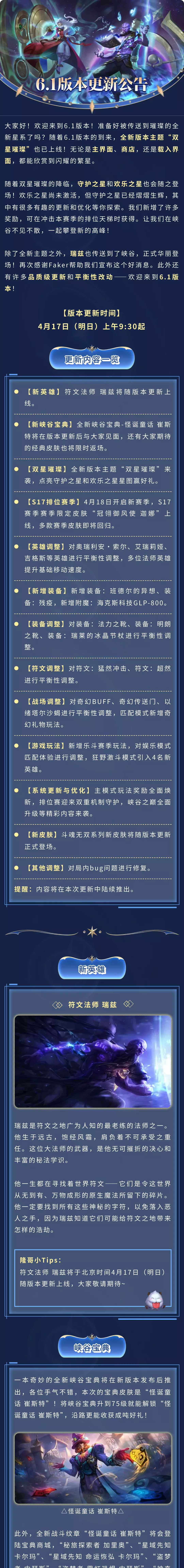 竞技体验史上最大规模更新!6.1新版本“双星璀璨”4月17日降临~