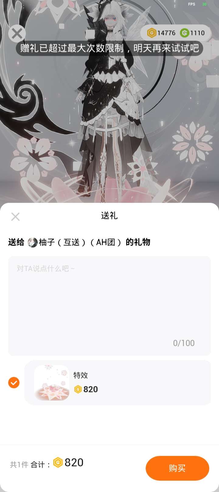 送礼次数太多了今天不能送了,所以明天在来找我
