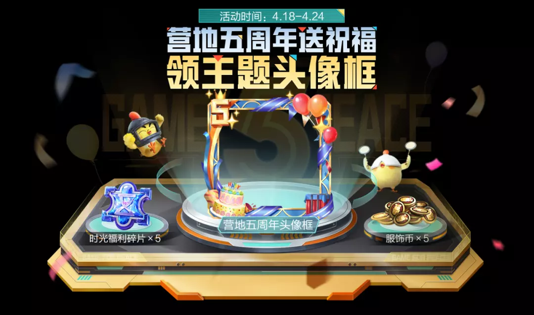 4月18日-4月24日,参与指定任务可获得烟花道具,使用烟花道具可以放烟花祝福,累计进度值就能获得主题头像框等奖励!还可以前往和平营地领取免费枪皮肤哦~